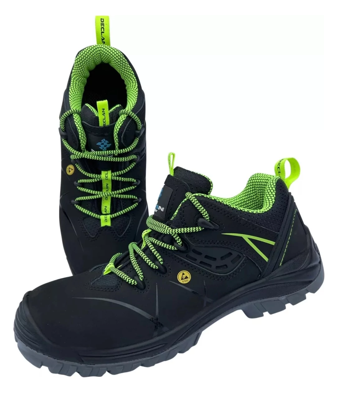 DECLAN Viper S3 SRC ESD munkavédelmi cipő kiváló minőségű nubukbőrből, kétrétegű csúszásmentes talppal. Kompozit orrmerevítő és Kevlár talplemez. CE EN ISO 20345 S3 ESD SRC minősítés. Fémmentes, antisztatikus, és kényelmes viselet.