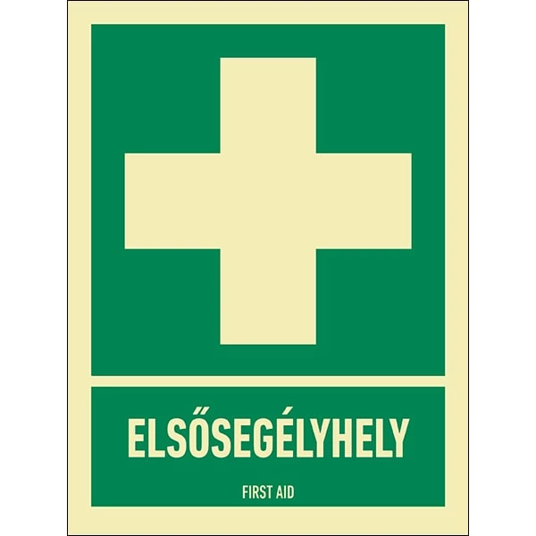 Elsősegélyhely Utánvilágítós Öntapadós Matrica 15X20cm