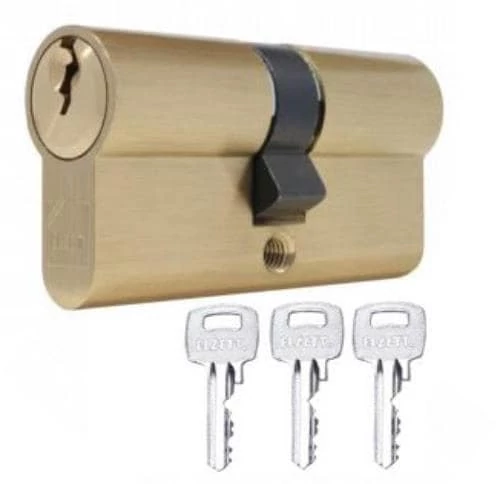 Alapbiztonságú, 5 csapos zárbetét sárgaréz kivitelben 5 db hagyományos kulccsal.