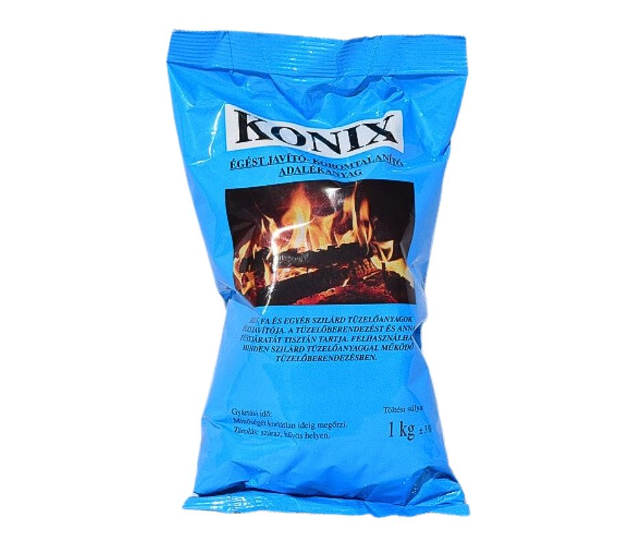 A KONIX hatására a már lerakódott szennyeződések fellazulnak, leválnak és szürke pernye formájában a kémény koromzsákjában és a füstjárataiban gyűlnek össze. Az adalékanyag alkalmazásával a kémény tisztaságának ellenőrzésére évente csak egy alkalommal van szükség. Az adalékanyag használata azonban a kéményseprőt nem helyettesíti.