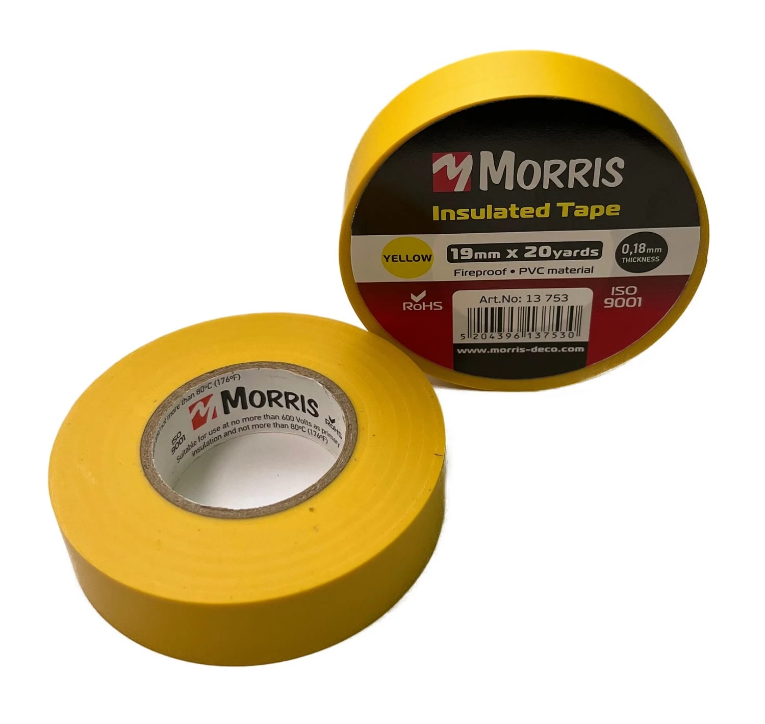 A Morris szigetelőszalag a tökéletes választás az elektromos szigetelési munkákhoz. A 19mm széles, 18m hosszú sárga szigetelőszalag, mely ISO9001 minősítéssel rendelkezik, kiváló minőséget és biztonságot kínál. Tűzálló (fireproof) kivitelezése és PVC anyaga garantálja a tartósságot és a megbízhatóságot. A szalag vastagsága 0,18mm, ami optimális szigetelési képességet biztosít. Alkalmazható legfeljebb 600 Voltos primer szigetelésként és nem több, mint 80°C-os hőmérsékleten. Válassza a Morris szigetelőszalagot az elektromos projektekhez, és bízzon a kiváló minőségű, szakértői megoldásban!