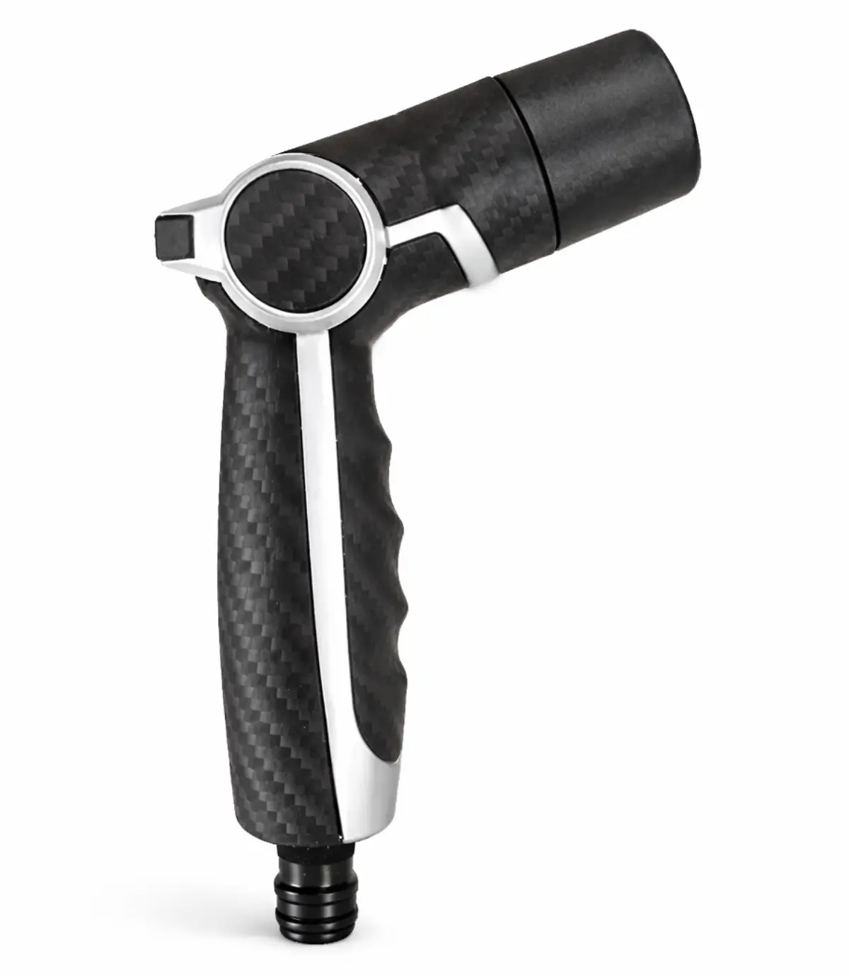 A Perlax Platinum profi locsolópisztoly a kerti öntözés felső kategóriáját képviseli. A rozsdamentes, masszív fémház és az elegáns karbon mintás kialakítás nemcsak esztétikus megjelenést biztosít, hanem kiemelkedő tartósságot is garantál.