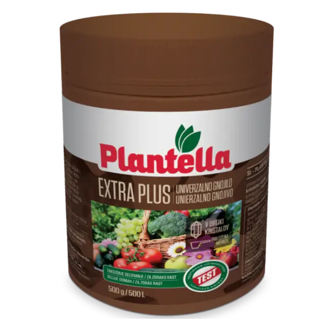 A Plantella EXTRA PLUS univerzális műtrágya, 500g-os kiszerelésben, kiválóan alkalmas kerti és balkonvirágok táplálására. A 100%-osan vízben oldódó kristályok rendkívül gyors és hatékony tápanyag-ellátást biztosítanak. Gazdaságos mivel, 500g műtrágyából 500 liter tápoldat készíthető, tartalmazva az összes szükséges fő- és mikrotápanyagot.