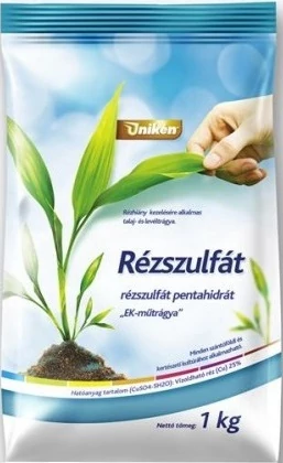 Rézhiány kezelésére alkalmas talaj- és levéltrágya.