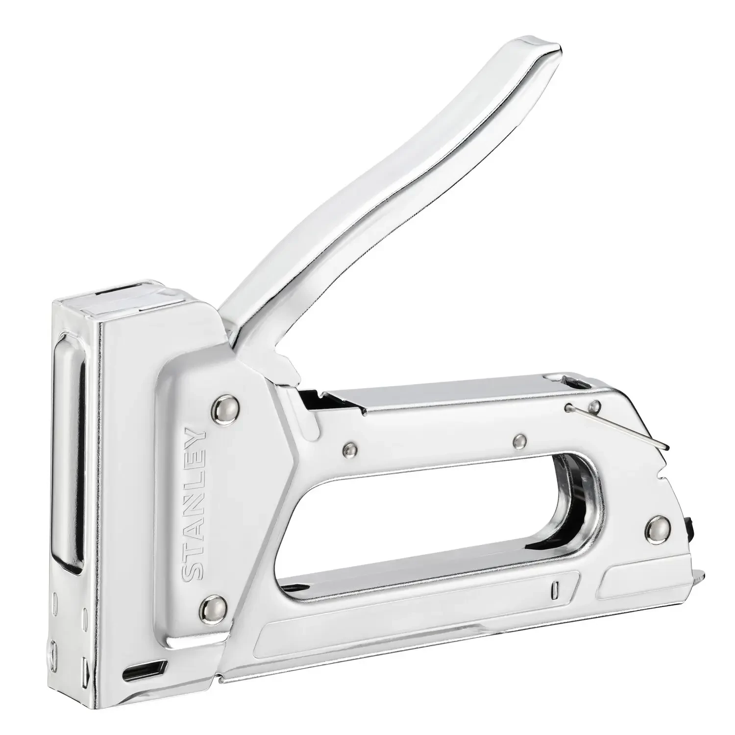 A STANLEY TR45 kézi tűzőgép a hobbi barkácsolók egyik legjobb választása, amelyet a könnyű kezelhetőség és a tartós kialakítás jellemez. Krómozott acélszerkezete ellenáll a rozsdának és hosszú élettartamot biztosít. A tűzőgép A-típusú kapcsokat használ (6, 8, 10 mm), így sokoldalú eszköz a különböző anyagokhoz. Az alsó betöltési mechanizmus egyszerűvé és gyorssá teszi a kapcsok cseréjét, míg a kapocs beragadásmentesítési rendszere minimálisra csökkenti az esetleges fennakadásokat. A lezárható fogantyú biztonságos tárolást biztosít, míg az ergonomikus kialakításnak köszönhetően kényelmesen használható hosszabb ideig is. Az eszköz súlya mindössze 0,51 kg, így könnyű és hordozható.