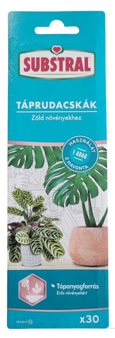 Felhasználás: Beszúrni a táprudacskát a növény és a cserép fala közé a földbe, ügyelve az egyenletes elosztásra!