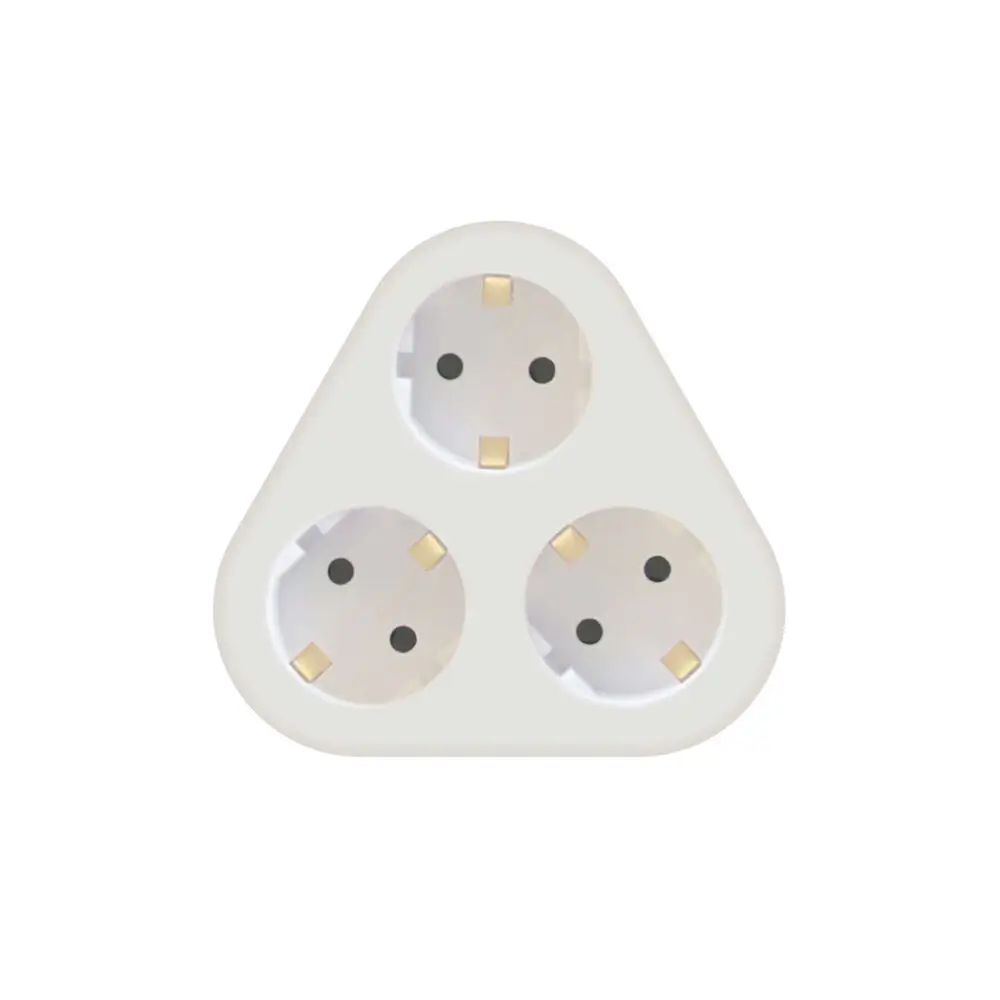 A háromszög alakú kialakítás lehetővé teszi, hogy a kábelek ne akadjanak össze, így több eszközt is egyszerre csatlakoztathatsz, miközben helytakarékos megoldást nyújt. Az elosztó fehér PVC műanyag burkolata biztosítja a kiváló szigetelést, így teljesen biztonságos a használata.