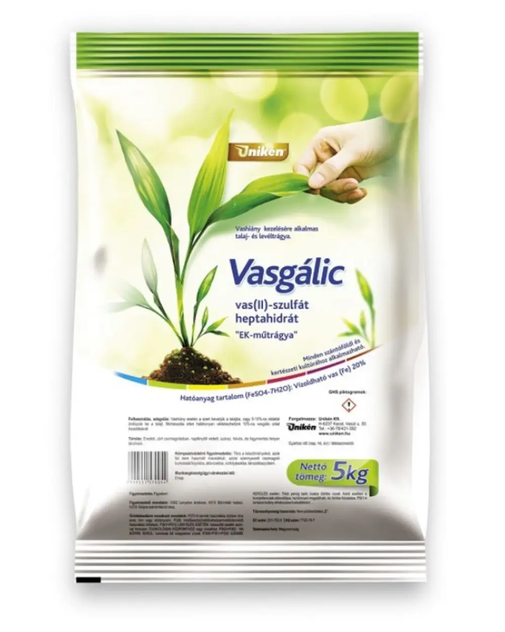 Hatóanyag tartalom (FeSO4-7H2O): Vízoldható vas (Fe) 20%