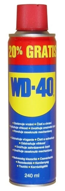 A WD-40 multifunkciós spray 6 funkcióval rendelkezik: nedvesség-kiszorító, korróziógátló, csavarlazító, kenőanyag, tisztítószer, védőanyag.